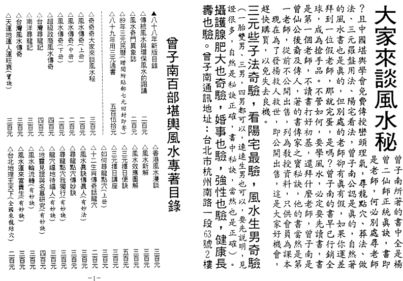 風水奇門異象誌目緣棺枢吊起如懸鹑墳墓葬得百尺深放入嬷中如睡兒富貴何在萬人祭三元地理奇門适甲翼象誌·欲學宗師楊曾廖寫書百部供人讀書店没有風水書風水奇門異象誌録三元奇門過甲真奇验葬法不合生哭福小孩明師生悲眼天公送财半年應風水奇怪真奇怪真穴生在「屁股下欲求大地厚植福田神乌報喜膽龍在天仙風道骨藏良穴大形大势入格局楊公託夢點良穴福缘機缘尝來到酒酣耳熟笑談間金粽金鞋是寶物有德之人天賜福你谢我来我谢你吉人天相天赐福風水奇門異象誌要把堪與大發楊風水學術發扬了真是異象異異象葬法適度生祥瑞曾子南的堪與不是祖傳的是你小姐傳授我的曾子南你還能寫書嗎?能能能我書中的文章是李教授代寫的?尋龍點穴讀讀讀星星跳舞女狀元盗印曾子南佳著赔三億元年方十五點穴來:男男女女笑哈哈吉人天相善德必昌豪光萬丈金满呈現有缘有福估先機處處珠我寶殿地吉地賜與賢德人得償風顧見大師催生風水異象誌厚情厚義是福病應發財又得福赠我金餅谢谢你善德必昌世代昌::.....:::::::::陳董蔡逢春張添顺曾子南長青心徐春土许鐸耀曾子南曾子南曾子南王知之徐部清琴仟大千曾子南陳達賢曾子南李帆纯曾子南李帆纯更五四五二五一四五坚四兵三五后三只兵二四二三三三二云九一八一七兵一五