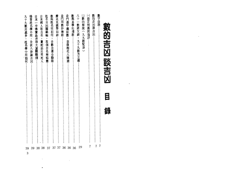数字,自說……九十九用處多,名學中用如何……。…………………………………………。格/名學不同·登依八卦論喜…………。………。。…。………。…。。日本一伞薄寶局弄得大家翰精倒……………………………。……日本人取吉名,蛇足笑死八………。………。…。。…。…。。………。名害福,取價吉名福慧………………。…………………………………………………·款與姓名究如何,合数合運含隐·………………。……。…。……。…………………。…。…。慶兆克鹰举如剧………………。奋門用妙傷啊……………………………奇凹遇甲蒙板数·需微梅花八攀適………。…。……。。…。。…。。………。。。。八十一教请又衢,九十九徽方正喔…………·……………………………。…。………。…………回款的解設(九九数配卦)敦的吉凶談吉凶目錄739393838373737363636293