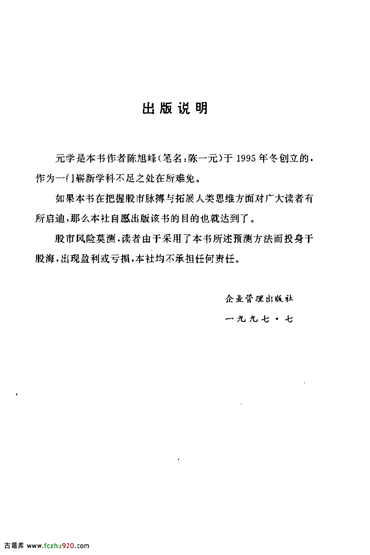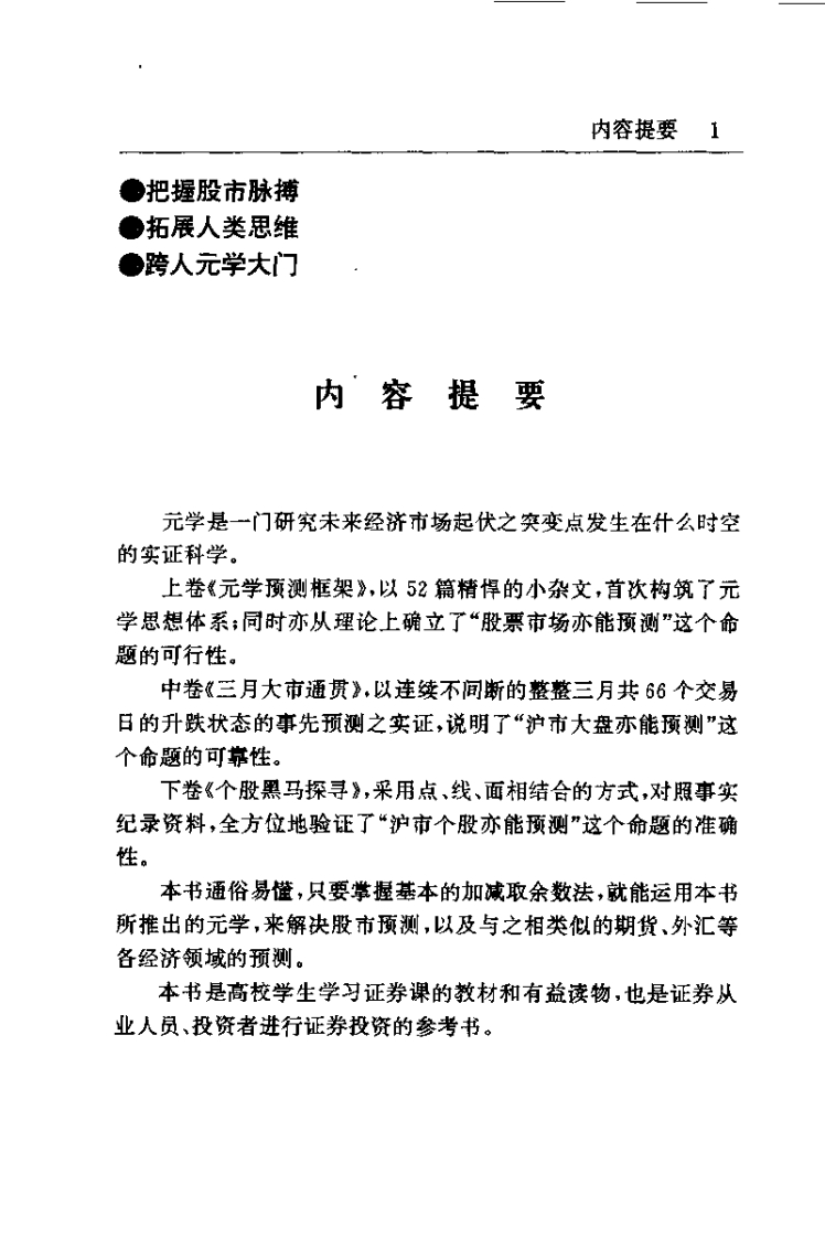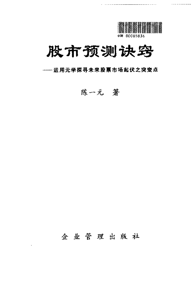 陈一元-股市预测诀窍-运用元学探寻未来股票市场起伏之突变点315页sishuge47天前发布关注私信5.58MB336页0275陈一元-股市预测诀窍-运用元学探寻未来股票市场起伏之突变点315页此内容为付费资源,请付费后查看¥5¥10VIP会员免费立即购买您当前未登录!建议登陆后购买,可保存购买订单付费资源 第1页 / 共336页 第2页 / 共336页 第3页 / 共336页 第4页 / 共336页 第5页 / 共336页 第6页 / 共336页 第7页 / 共336页 第8页 / 共336页 试读已结束,还剩328页,您可下载完整版后进行离线阅读 © 版权声明文章版权归作者所有,未经允许请勿转载。THE END五术专题 文本预览 中财0085836股市预测决窍一运用元学探荨未来股渠市场起伏之突变点陈一元著企业管理出版社 查看更多 收起部分 喜欢就支持一下吧点赞5 分享QQ空间微博QQ好友海报分享复制链接收藏