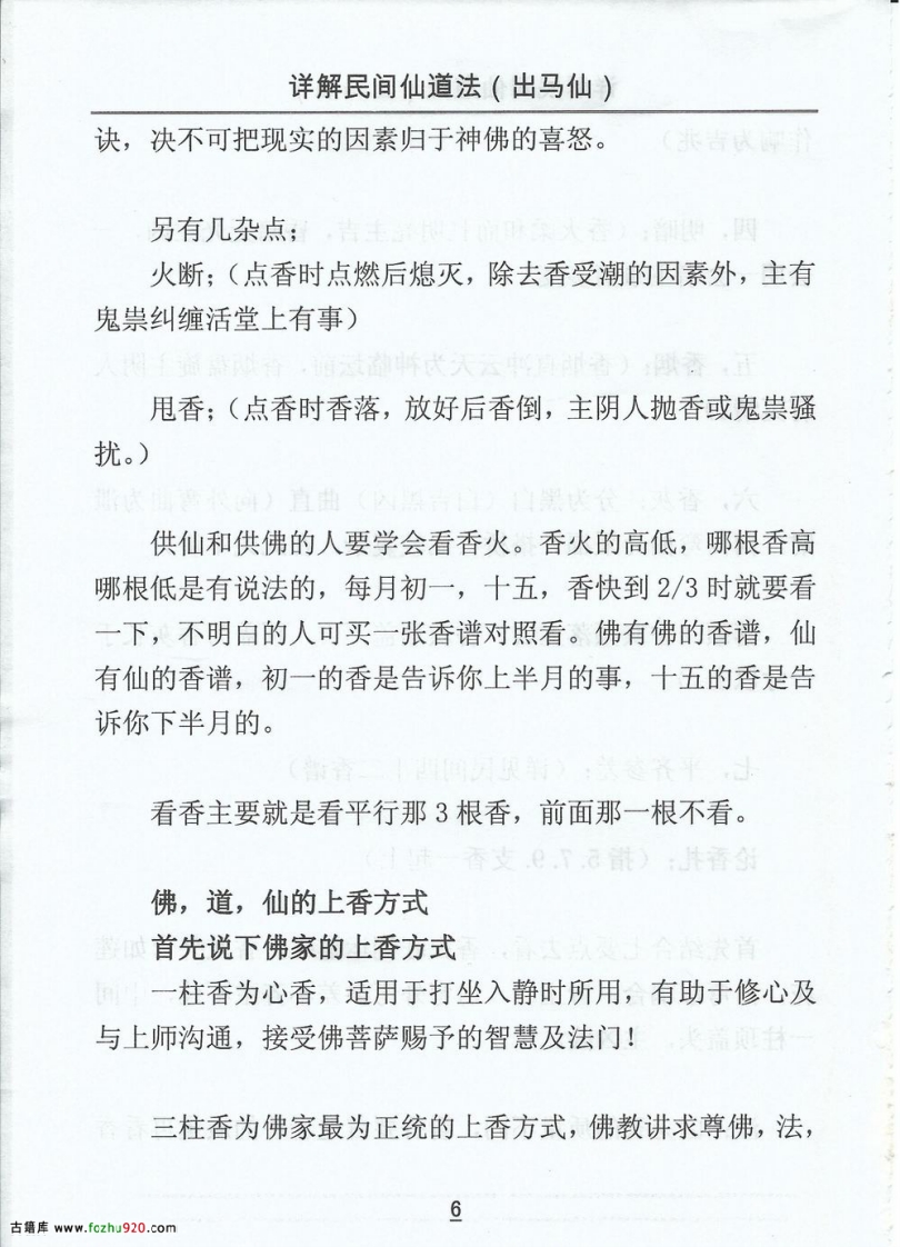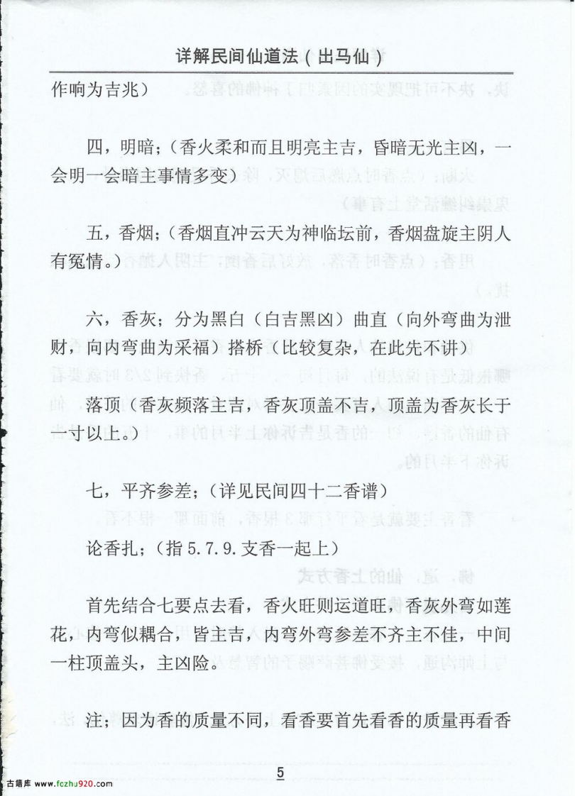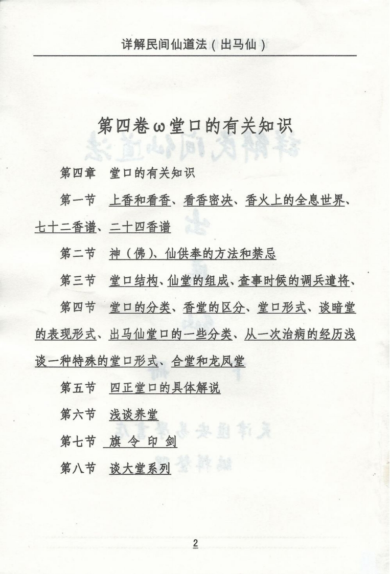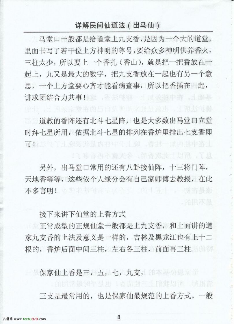 出马仙-详解民间仙道法sishuge47天前发布关注私信90.99MB407页04510出马仙-详解民间仙道法此内容为付费资源,请付费后查看¥5¥10VIP会员免费立即购买您当前未登录!建议登陆后购买,可保存购买订单付费资源 第1页 / 共407页 第2页 / 共407页 第3页 / 共407页 第4页 / 共407页 第5页 / 共407页 第6页 / 共407页 第7页 / 共407页 第8页 / 共407页 试读已结束,还剩399页,您可下载完整版后进行离线阅读 © 版权声明文章版权归作者所有,未经允许请勿转载。THE END五术专题 文本预览 详解民间仙道法(出马仙)第四卷ω堂口的有关知识第四章堂口的有关知识第一节上香和看香、看香密决、香火上的全息世界、七土二香谱、二土四香谱第二节神(佛)入仙供奉的方法和禁忌第三节堂口结构、仙堂的组成、查事时候的调兵遣将、第四节堂口的分类、香堂的区分、堂口形式、谈暗堂的表现形式、出马仙堂口的一些分类、从一次治病的经历浅谈一种特殊的堂口形式、合堂和龙凤堂第五节四正堂口的具体解说第六节浅谈养堂第七节旗令印剑安到轩第八节谈大堂系列客转2 查看更多 收起部分 喜欢就支持一下吧点赞10 分享QQ空间微博QQ好友海报分享复制链接收藏
