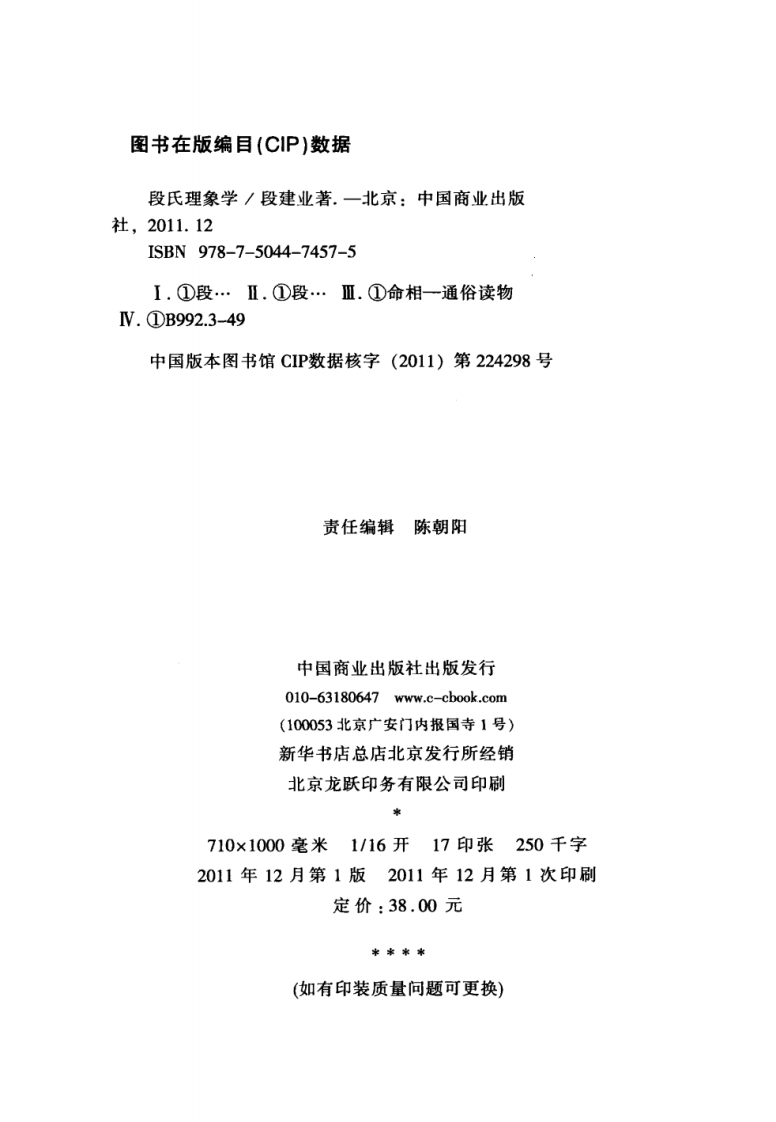 段建业-段氏理象学244页sishuge47天前发布关注私信9.27MB270页0467段建业-段氏理象学244页此内容为付费资源,请付费后查看¥5¥10VIP会员免费立即购买您当前未登录!建议登陆后购买,可保存购买订单付费资源 第1页 / 共270页 第2页 / 共270页 第3页 / 共270页 第4页 / 共270页 第5页 / 共270页 第6页 / 共270页 第7页 / 共270页 第8页 / 共270页 试读已结束,还剩262页,您可下载完整版后进行离线阅读 © 版权声明文章版权归作者所有,未经允许请勿转载。THE END五术专题 文本预览 段风裙徐爱盲派命理研究命理之学,法门众多,易学难精。《段氏理象学一言派命理研究》一书是通过发掘民问言人之论命精髓,历时十年的研究总结,形成一套完整的命学体系。集理法、象法、技法于一体,重点阐述理法及象法的应用,扬弃前人“用神”论命之法,应用全新的“做功”理论解读命理,并在实践中得到充分验证。本书是一部突破传统,全新认识命理之奇书。对于命理学的研究与发展具有开拓性的意义15BN978-7-5044-7457-59"787504"474575>定价:38.00元 查看更多 收起部分 喜欢就支持一下吧点赞7 分享QQ空间微博QQ好友海报分享复制链接收藏