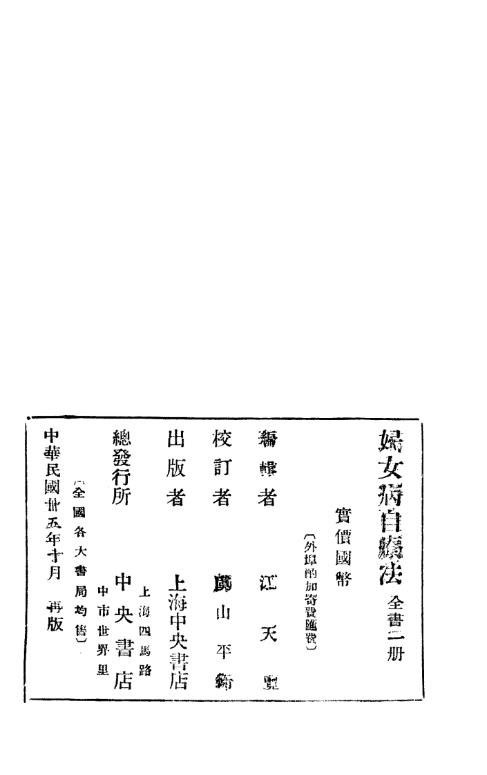 妇女病自疗法民国35sishuge昨天发布关注私信3.47MB172页0349妇女病自疗法民国35此内容为付费资源,请付费后查看¥6¥10VIP会员免费立即购买您当前未登录!建议登陆后购买,可保存购买订单付费资源 第1页 / 共172页 第2页 / 共172页 第3页 / 共172页 第4页 / 共172页 第5页 / 共172页 第6页 / 共172页 第7页 / 共172页 第8页 / 共172页 试读已结束,还剩164页,您可下载完整版后进行离线阅读 © 版权声明文章版权归作者所有,未经允许请勿转载。THE END中医针灸# 中医# 民国中医 文本预览 校中華民國五年十月再版總發行所版訂者者全國各大書局均售》實價國幣江中市世界里中央書店上海四馬路上海中央書店麟山【外坦酌加寄费滙费)婦女海自凝法全書二册平天霸鞋 查看更多 收起部分 喜欢就支持一下吧点赞9 分享QQ空间微博QQ好友海报分享复制链接收藏