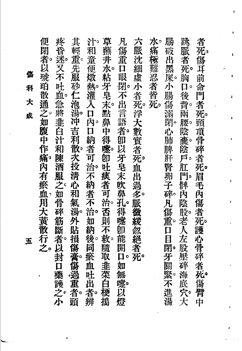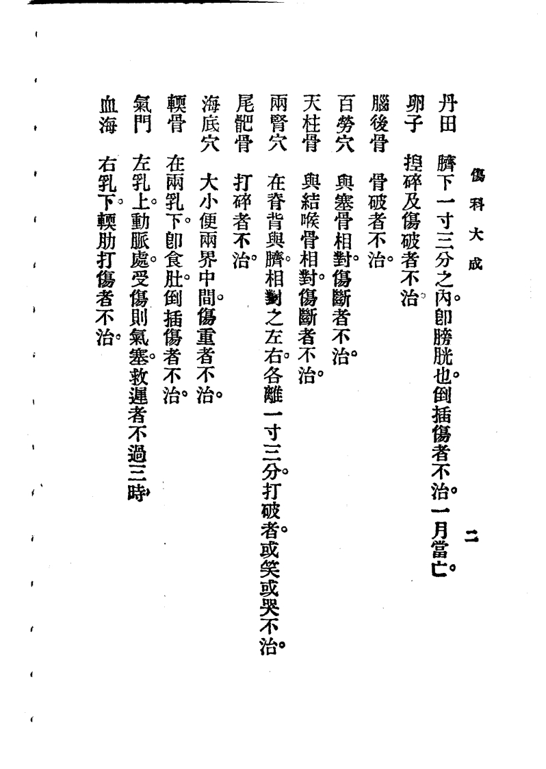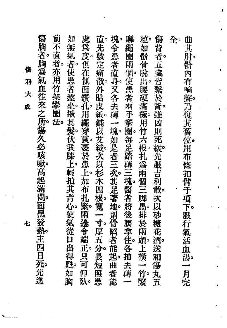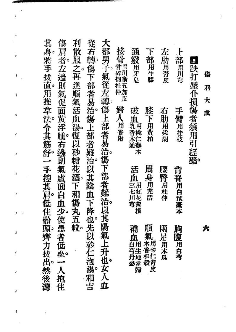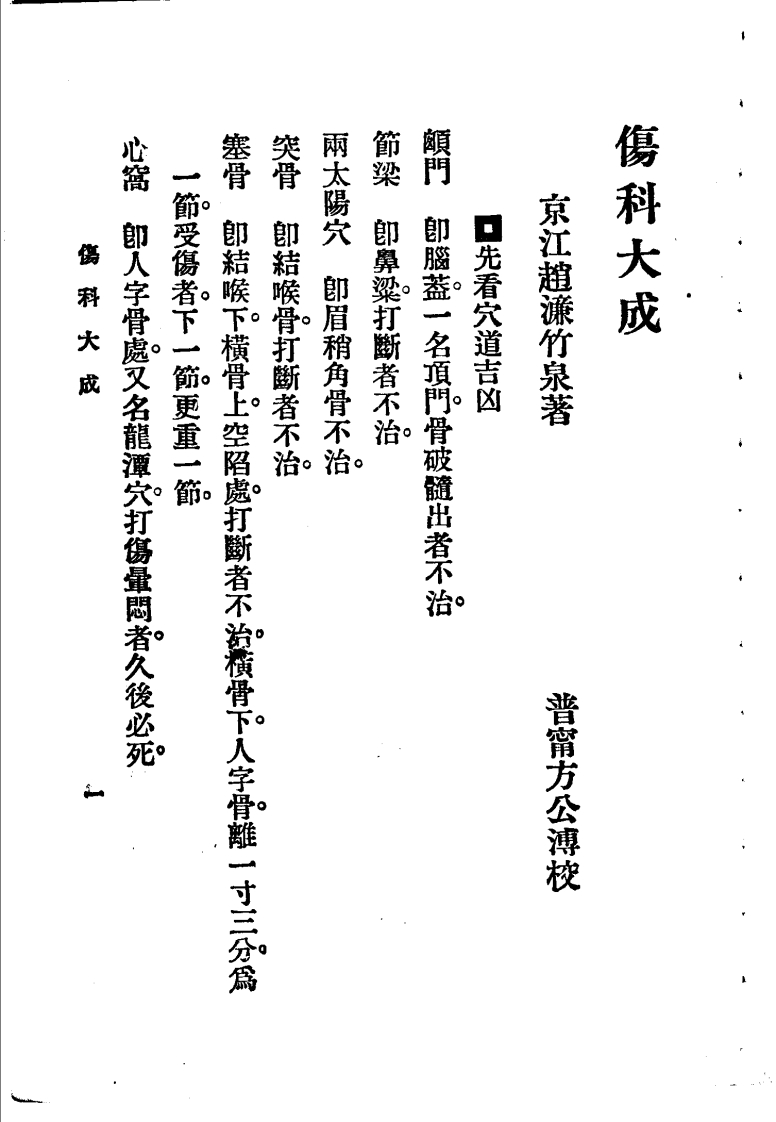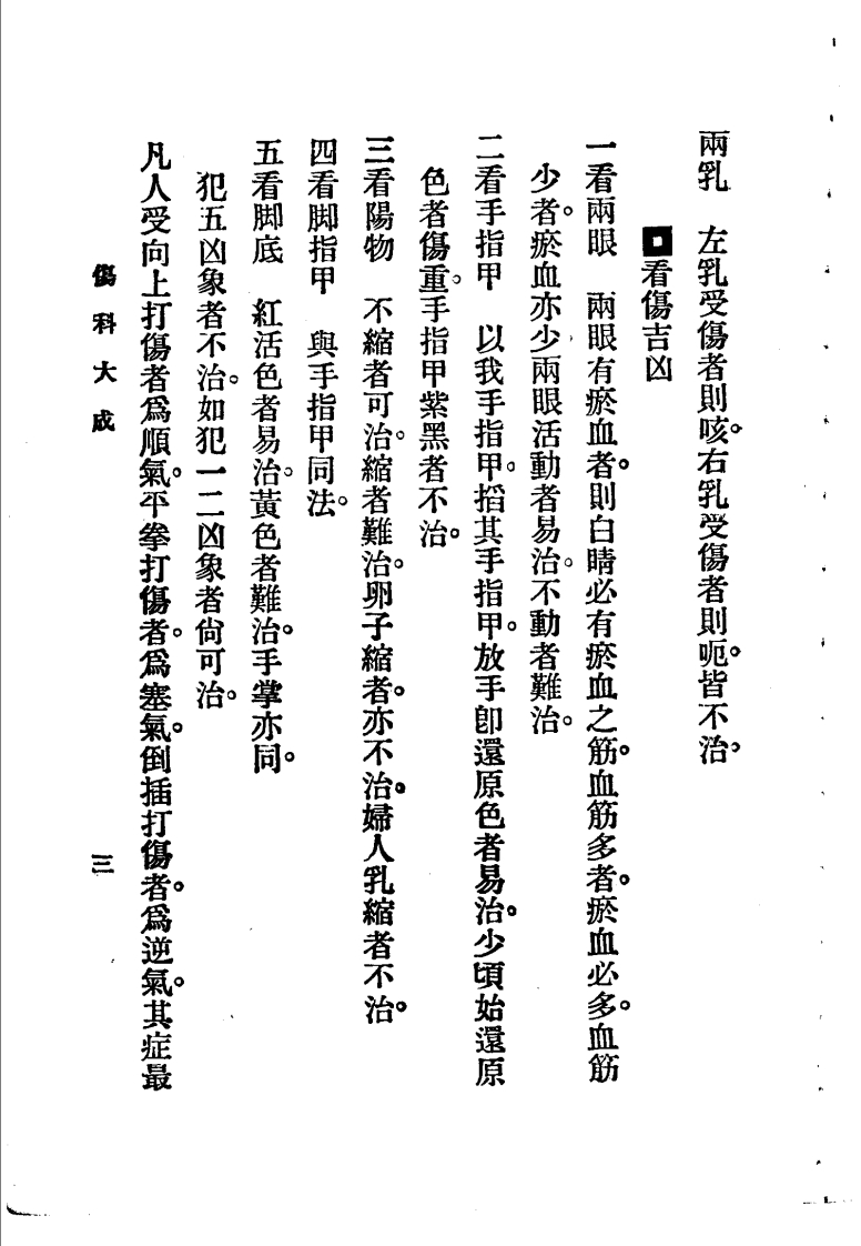 伤科大成_中医书局1955sishuge15小时前发布关注私信1.21MB51页0298伤科大成_中医书局1955此内容为付费资源,请付费后查看¥6¥10VIP会员免费立即购买您当前未登录!建议登陆后购买,可保存购买订单付费资源 第1页 / 共51页 第2页 / 共51页 第3页 / 共51页 第4页 / 共51页 第5页 / 共51页 第6页 / 共51页 第7页 / 共51页 第8页 / 共51页 试读已结束,还剩43页,您可下载完整版后进行离线阅读 © 版权声明文章版权归作者所有,未经允许请勿转载。THE END中医针灸# 中医# 民国中医 文本预览 顧門…富科大成心窑即人字骨處又名龍源穴打傷量問者久後必死一節受傷者下一妳更重一節塞骨即籍喉下横骨上空昭處打斷者不顧骨下人字骨離一寸三分為笑骨即籍喉骨打断者不治兩太陽穴即眉稍角骨不治節梁即鼻梁打断者不治腾盖一名項門骨破體出者不治先看穴道吉凶京江趙濂竹泉著傷科大成普宿方公薄校 查看更多 收起部分 喜欢就支持一下吧点赞8 分享QQ空间微博QQ好友海报分享复制链接收藏