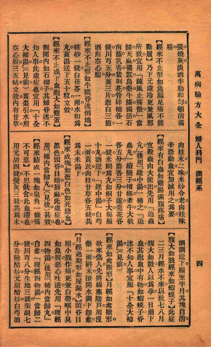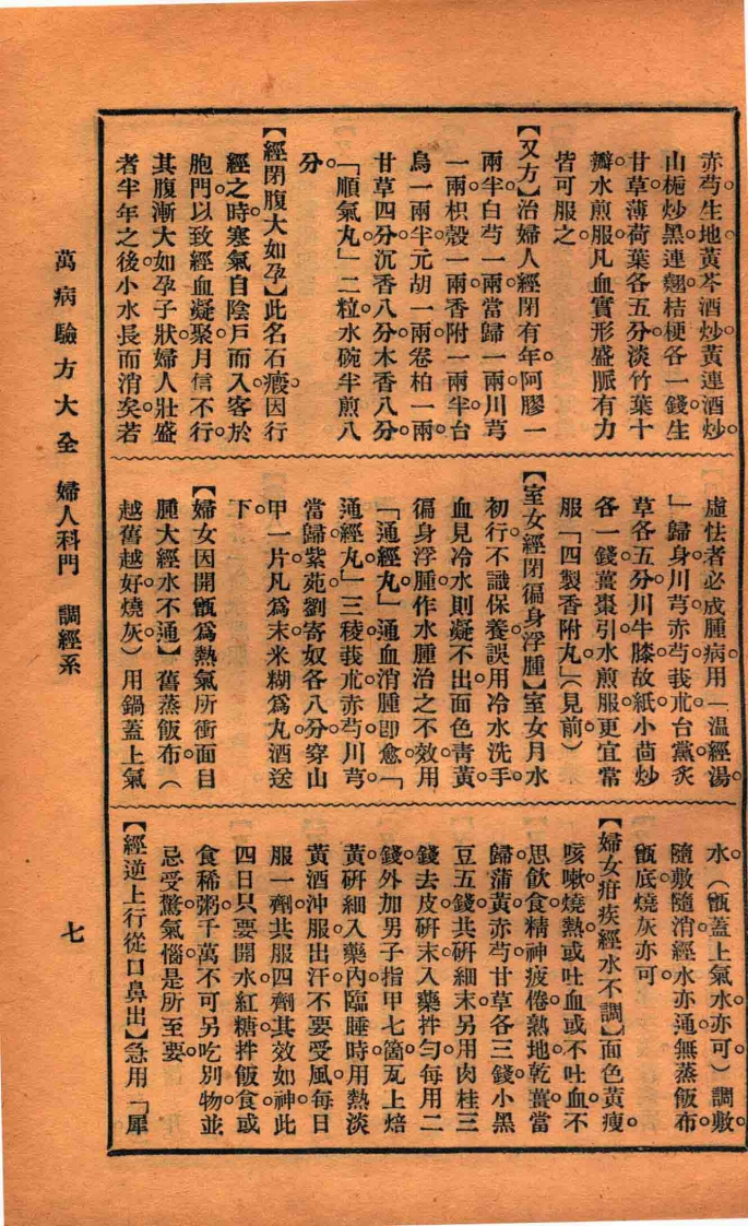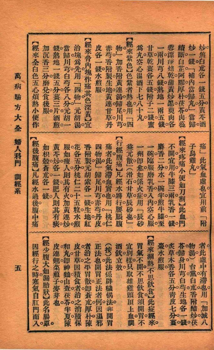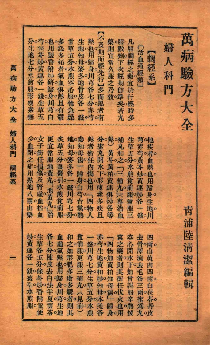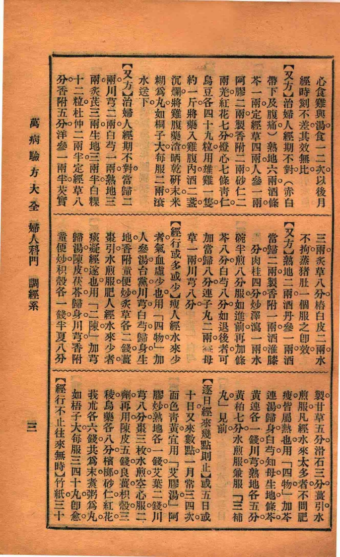 怨多拓不及期而經萬病驗方大全集则宜常人服之乃、多鉴[活血通經類調經系婦人科門。一歸俱衣骨各錢o身o熱生草五容两酒有生T分g】凡服調經之藥宜於行經時多萬病驗方大全白性急燥烯人科門少血閉之症用熟地入兩山藥女子衡任我草五分更宜常服鞋調經系照水黄生草五分水尊赤芍貴斗水食錢白用瘦連九o恐黨癢(專治血策服三黄速炒各一锁他疾者血热也用锦知生地川服o分o人炒黄連各和鑫梦青服o川生物宫之空心開文服七芬形更背地加去骨澤瀉去用多三分柏柏其青浦陵清潔編輯:自歸瘡補生妙0知多丸莫知母任鬱五母湯服者見芬木二火生前水通其煎各身o用援