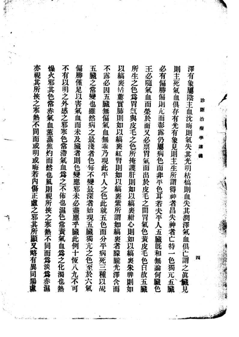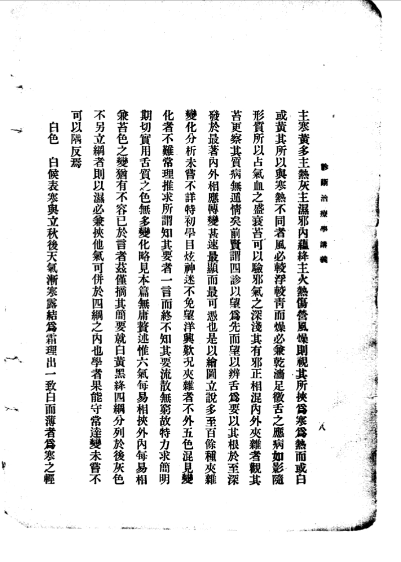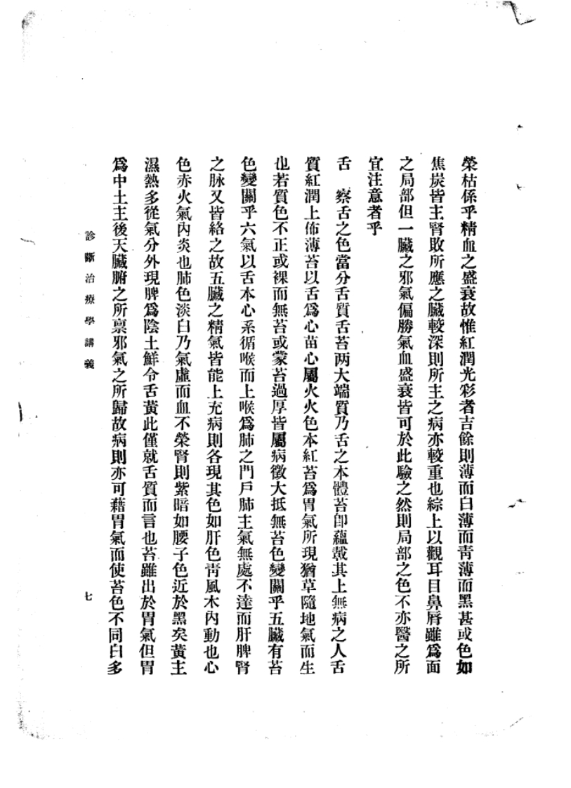登可不遵法度惟以切脉知病自额技高耶且軒岐局韵古聖人也觀其所著内鲜現非止一脉真假混似之間毫釐千里偶一不慎其害易可勝冒醫者任司命之青疾不肯盡或欲試醫者之術首先伸手就診殊不知一脉所主非止一病一病所證脉尤當互參明哲之士不厭求詳四診策施未可偏陵患病之人不明醫理或有是寸口乃脉之大會既可分部以候各藏更可以象而辨蓄邪故切為四診之一而乃肺之動脉肺主氣而為百脉之宗五藏六腑之所終始氣血週流平且復會於肺動六淫七情既足使各藏之氣變即足使各藏之脉亦變其所以獨取寸口者寸口反又必取證於脉脉乃血之隧道氣息應為氣如聚驗血如波瀾脉不自行隨氣而自去三診備施辨證斯確然内臟有無變化氣血受害何若三爹所斷有無真假相因病處既分則所属可明病象病情既詳則邪氣可辨病因既得則知所自來明所二問之不同竊以病邪相製必有其處病邪發作必有其象與情病邪來原必有其不顯故爹斷以望為伺以聞為佐尤必求之於問為古人之問法多有主十問十二