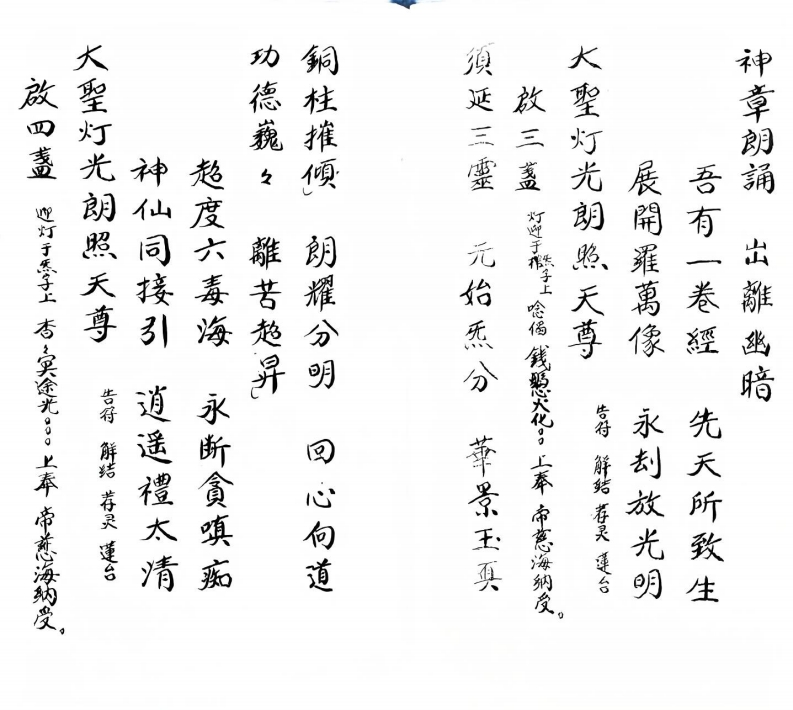 九阳迎灯绕棺sishuge26天前发布关注私信0.88MB7页02114九阳迎灯绕棺此内容为付费资源,请付费后查看¥5¥10VIP会员免费立即购买您当前未登录!建议登陆后购买,可保存购买订单付费资源 第1页 / 共7页 第2页 / 共7页 第3页 / 共7页 第4页 / 共7页 第5页 / 共7页 第6页 / 共7页 第7页 / 共7页 已完成全部阅读,共7页 © 版权声明文章版权归作者所有,未经允许请勿转载。THE END道法符咒# 道家# 科仪# 湖南地区科书 文本预览 混合自然上“禪善上華帝恶海朝受風雷地傲生神天帝大聖灯光朝照天亨对軍熙量有法悟無法功德莫能量道沙目然花玉京仙範上生天堂龍漢開光香+实途光。2°照獨重陰生神寶章九陽迎燈遠馆道塊五若停酸游行三界告得解结交灯蓮台無修却有价混元祖焉孝士度誠体燈供候聖福海納发 查看更多 收起部分 喜欢就支持一下吧点赞14 分享QQ空间微博QQ好友海报分享复制链接收藏