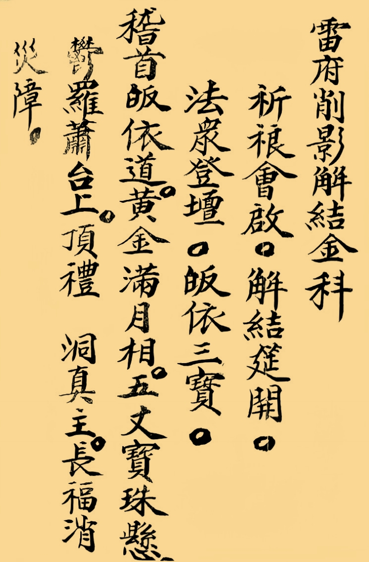 雷府解结科sishuge26天前发布关注私信14.30MB76页04214雷府解结科此内容为付费资源,请付费后查看¥5¥10VIP会员免费立即购买您当前未登录!建议登陆后购买,可保存购买订单付费资源 第1页 / 共76页 第2页 / 共76页 第3页 / 共76页 第4页 / 共76页 第5页 / 共76页 第6页 / 共76页 第7页 / 共76页 第8页 / 共76页 试读已结束,还剩68页,您可下载完整版后进行离线阅读 © 版权声明文章版权归作者所有,未经允许请勿转载。THE END道法符咒# 道家# 科仪# 湖南地区科书 文本预览 法眾登擅。板依三寶雷府岗影解結金科洞真主長福增稽首奴依道黄金蒲月相五文賀珠您祈根會效。解結從開口 查看更多 收起部分 喜欢就支持一下吧点赞14 分享QQ空间微博QQ好友海报分享复制链接收藏