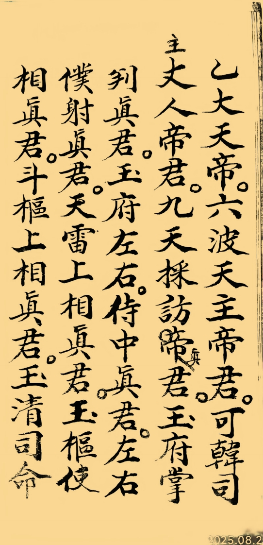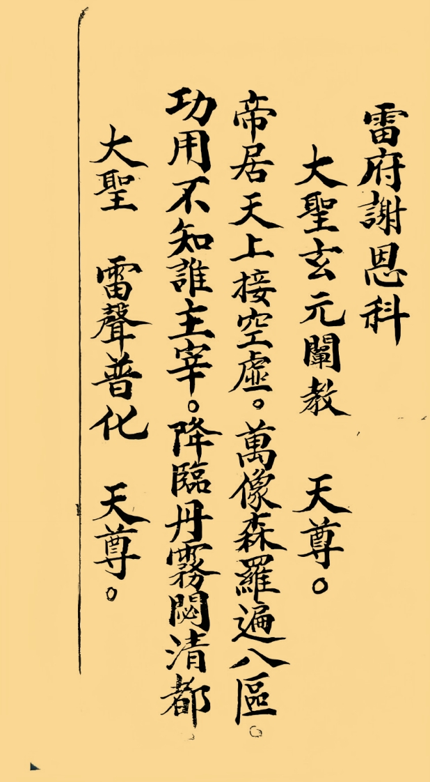 雷府谢恩科sishuge26天前发布关注私信7.34MB33页04615雷府谢恩科此内容为付费资源,请付费后查看¥5¥10VIP会员免费立即购买您当前未登录!建议登陆后购买,可保存购买订单付费资源 第1页 / 共33页 第2页 / 共33页 第3页 / 共33页 第4页 / 共33页 第5页 / 共33页 第6页 / 共33页 第7页 / 共33页 第8页 / 共33页 试读已结束,还剩25页,您可下载完整版后进行离线阅读 © 版权声明文章版权归作者所有,未经允许请勿转载。THE END道法符咒# 道家# 科仪# 湖南地区科书 文本预览 大聖雷府卦思科雷聲普化天尊。功月不知誰主辛。降臨丹露問清都帝居天上接空虚。萬像森羅通八區大聖玄元開载天尊。 查看更多 收起部分 喜欢就支持一下吧点赞15 分享QQ空间微博QQ好友海报分享复制链接收藏