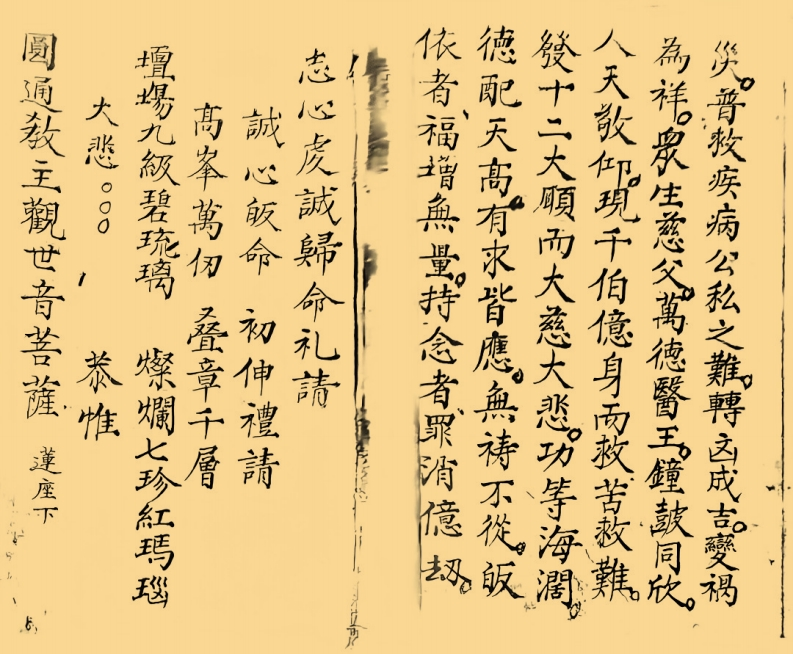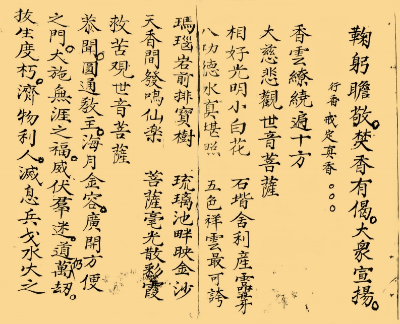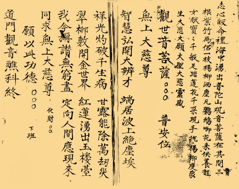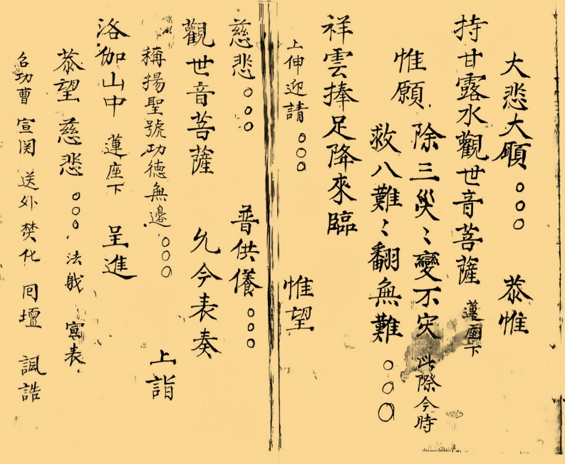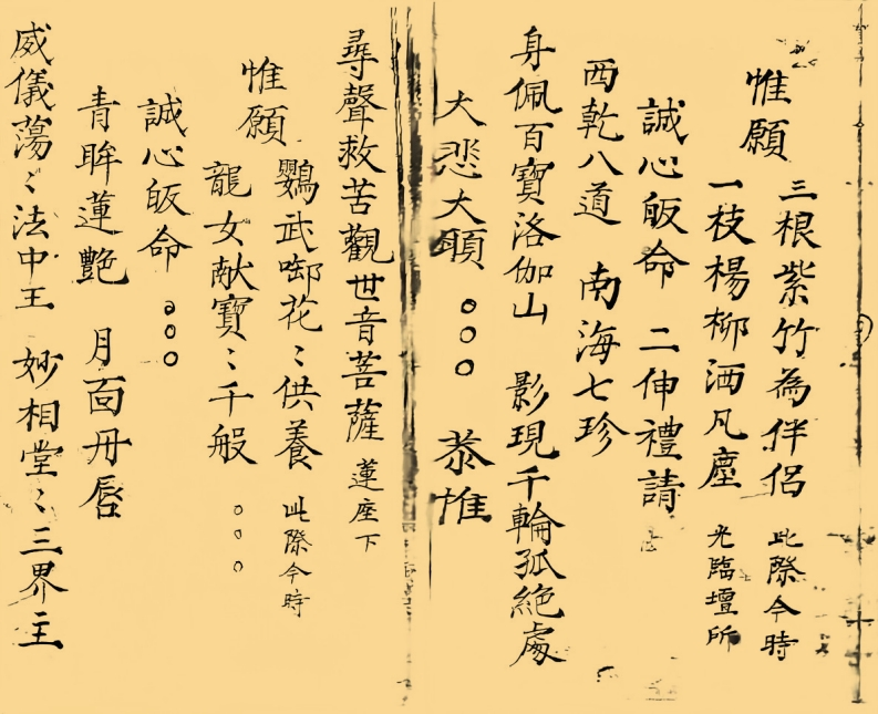 灵宝观音醮sishuge26天前发布关注私信1.88MB8页04915灵宝观音醮此内容为付费资源,请付费后查看¥5¥10VIP会员免费立即购买您当前未登录!建议登陆后购买,可保存购买订单付费资源 第1页 / 共8页 第2页 / 共8页 第3页 / 共8页 第4页 / 共8页 第5页 / 共8页 第6页 / 共8页 第7页 / 共8页 第8页 / 共8页 已完成全部阅读,共8页 © 版权声明文章版权归作者所有,未经允许请勿转载。THE END道法符咒# 道家# 科仪# 湖南地区科书 文本预览 今則世望未敢自事先當漂際望拜文運謹上詩洛加山華座不呈進時當美景登上華擅奉行科书让聖是凡成對法知俗談瞧笑擅藍上来葫揚三聲聖號功德無邊是飯依海會亲高真持甘零水大慈圆通教主郑聲教苦法泉友藏理傷清净靈寶觀音瞧科觀世音菩隆頌揚望號境界光明 查看更多 收起部分 喜欢就支持一下吧点赞15 分享QQ空间微博QQ好友海报分享复制链接收藏