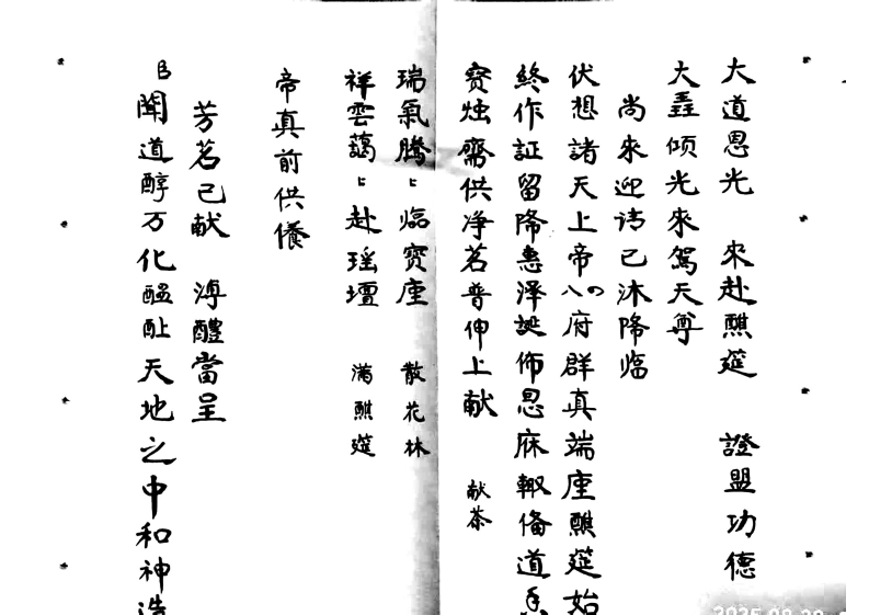 清微迎真科sishuge26天前发布关注私信3.82MB8页03415清微迎真科此内容为付费资源,请付费后查看¥5¥10VIP会员免费立即购买您当前未登录!建议登陆后购买,可保存购买订单付费资源 第1页 / 共8页 第2页 / 共8页 第3页 / 共8页 第4页 / 共8页 第5页 / 共8页 第6页 / 共8页 第7页 / 共8页 第8页 / 共8页 已完成全部阅读,共8页 © 版权声明文章版权归作者所有,未经允许请勿转载。THE END道法符咒# 道家# 科仪# 湖南地区科书 文本预览 饭命礼老祖普廣並至聖妙法廣傳度衣真杰科演教利草生梅首纸依宗师主道佛两門一派分秘衡城命礼天地水陽界高真堂妙相满赫仁聲混靈学善学思学松首峨依四京神乾坤海岳一源分堂 查看更多 收起部分 喜欢就支持一下吧点赞15 分享QQ空间微博QQ好友海报分享复制链接收藏