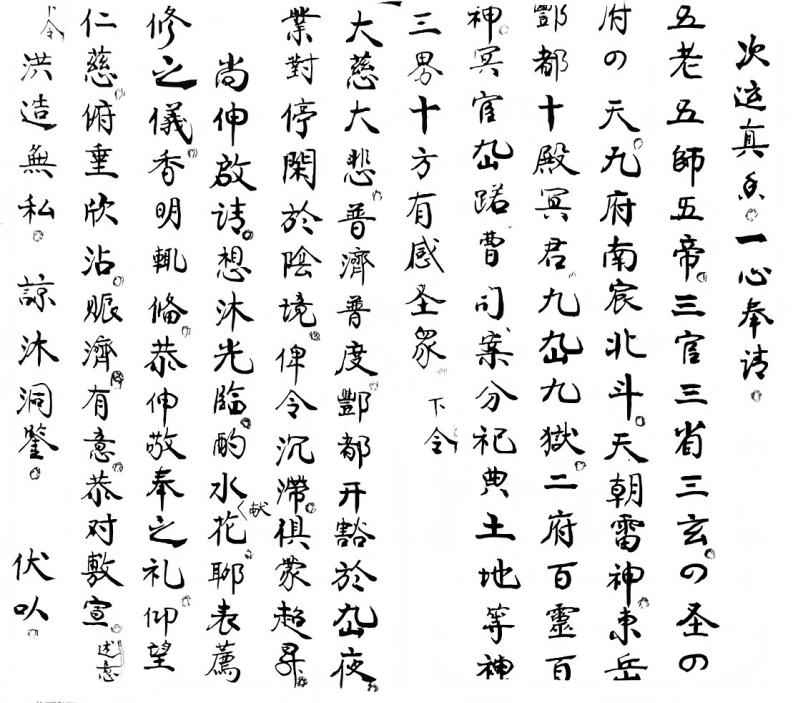 赈济sishuge26天前发布关注私信4.59MB25页04712赈济此内容为付费资源,请付费后查看¥5¥10VIP会员免费立即购买您当前未登录!建议登陆后购买,可保存购买订单付费资源 第1页 / 共25页 第2页 / 共25页 第3页 / 共25页 第4页 / 共25页 第5页 / 共25页 第6页 / 共25页 第7页 / 共25页 第8页 / 共25页 试读已结束,还剩17页,您可下载完整版后进行离线阅读 © 版权声明文章版权归作者所有,未经允许请勿转载。THE END道法符咒# 道家# 科仪# 湖南地区科书 文本预览 逢列神北一宗以合修因未满法事未周灵每香其有施食意個涯当宣句全供餐刻中起清凉沐光臨工香茶买酒普大王。哪香大同上六神是日有清無没大希过佛宗師雷神官将本爲娥望東云府術学孤况养主者水府扶杂舟那都大地奇买天尽内十股朝王老十校高真東岳太生仁圣皇帝地府教苦天尊十方做告真人童凸三皇五母元君高上神宵八宸卫帝买肠教主法争 查看更多 收起部分 喜欢就支持一下吧点赞12 分享QQ空间微博QQ好友海报分享复制链接收藏