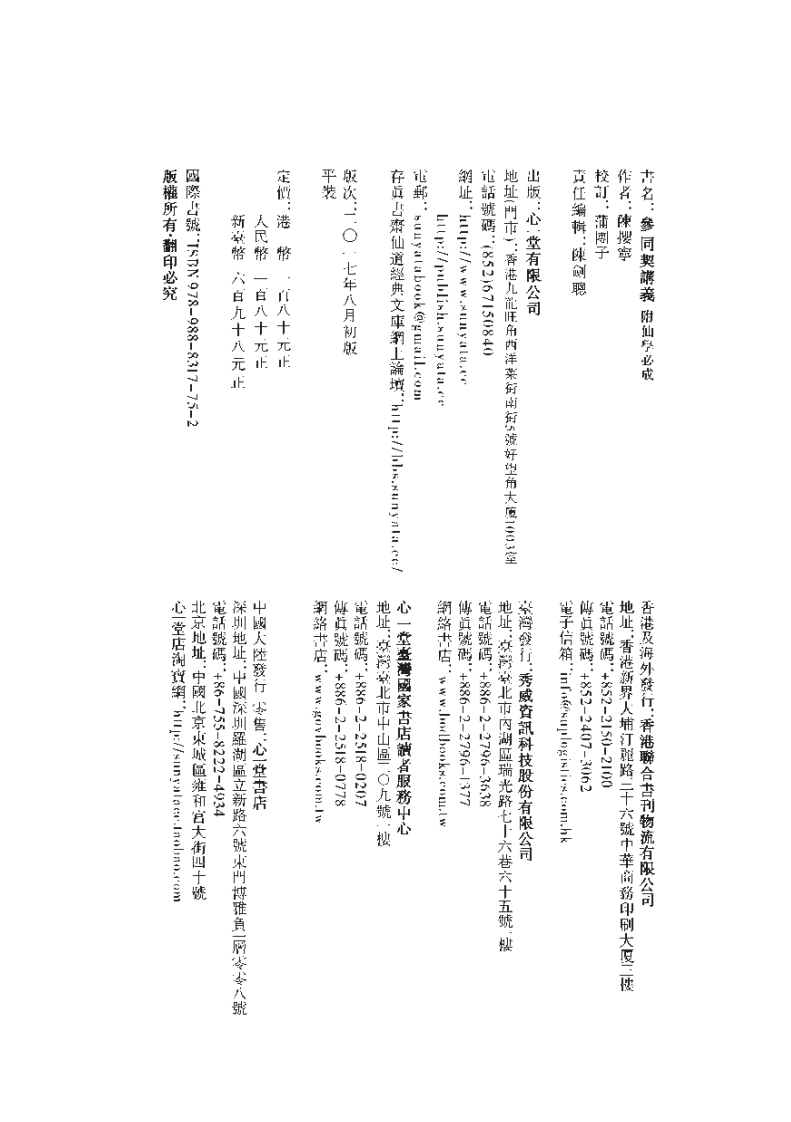 参同契讲义附仙学必成陈撄宁着sishuge23天前发布关注私信30.81MB262页04814参同契讲义附仙学必成陈撄宁着此内容为付费资源,请付费后查看¥6¥10VIP会员免费立即购买您当前未登录!建议登陆后购买,可保存购买订单付费资源 第1页 / 共262页 第2页 / 共262页 第3页 / 共262页 第4页 / 共262页 第5页 / 共262页 第6页 / 共262页 第7页 / 共262页 第8页 / 共262页 试读已结束,还剩254页,您可下载完整版后进行离线阅读 © 版权声明文章版权归作者所有,未经允许请勿转载。THE END道法符咒# 道家# 心一堂道家 文本预览 世,以廣流傳。修寶證為研究基礎。本文庫已整理幽典籍多種,今由香港心一堂出版社陵霸公開幽版面實修經驗、與仙道文化相關之其他著作為主,以符合正統仙道修養為整理原則,以真仙道大家之傳世著述、鎮臨失傳之孤本要籍、外界流傳較少之仙道佳裤、仙道修養之存真書齋仙道經典文庫意在保留中華傳統仙道文化之優秀資料,入選典籍以歷代 查看更多 收起部分 喜欢就支持一下吧点赞14 分享QQ空间微博QQ好友海报分享复制链接收藏