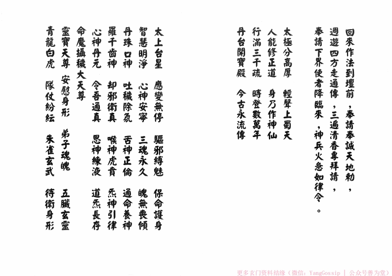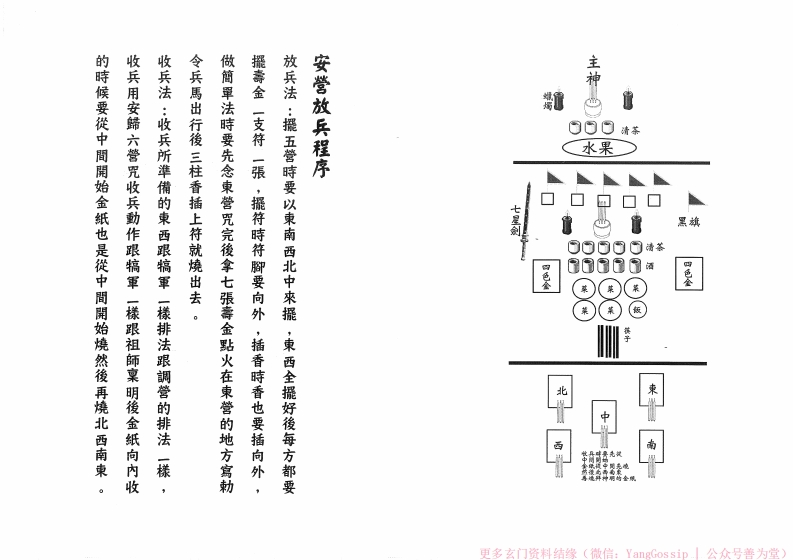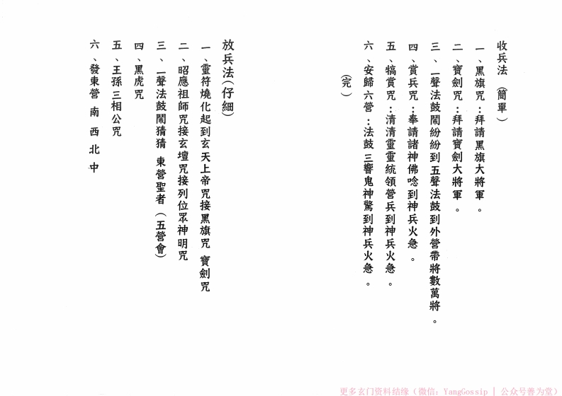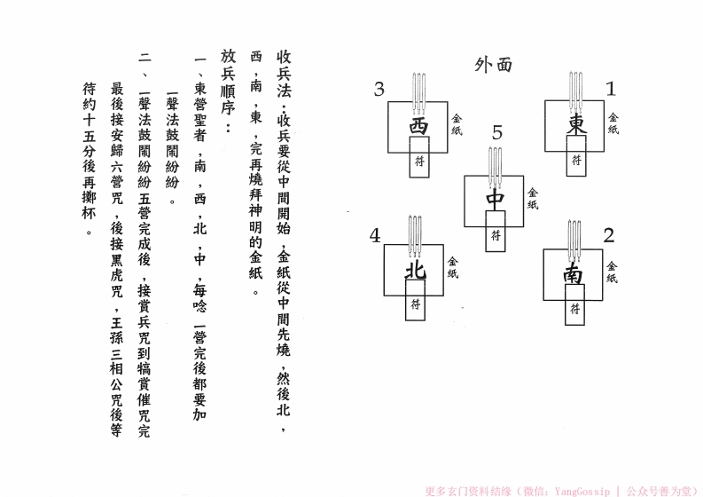 闾山安营放兵sishuge3天前发布关注私信12.92MB56页0496闾山安营放兵此内容为付费资源,请付费后查看¥3¥6VIP会员免费钻石会员免费立即购买您当前未登录!建议登陆后购买,可保存购买订单付费资源 第1页 / 共56页 第2页 / 共56页 第3页 / 共56页 第4页 / 共56页 第5页 / 共56页 第6页 / 共56页 第7页 / 共56页 第8页 / 共56页 试读已结束,还剩48页,您可下载完整版后进行离线阅读 © 版权声明文章版权归作者所有,未经允许请勿转载。THE END道法符咒# 道家# 闾山# 120本闾山法师 文本预览 外面3待约十五分後再擲杯。一、東營聖者放兵顺序:西盒5金纸最後接安歸六管咒,後接黑虎咒,王孫三相公咒後等二、聲法鼓關紛紛五營完成後,接賞兵咒到犒賞催咒完一聲法鼓關纷纷。西,南,東,完再燒拜神明的金纸。收兵法:收兵要從中間開始,金紙從中間先燒,然後北,特符,南,西,北,中,每啥一營完後都要加金纸4符2盒南盒特更多玄门资料结缘(微信:YangGossip公众号善为堂) 查看更多 收起部分 喜欢就支持一下吧点赞6 分享QQ空间微博QQ好友海报分享复制链接收藏