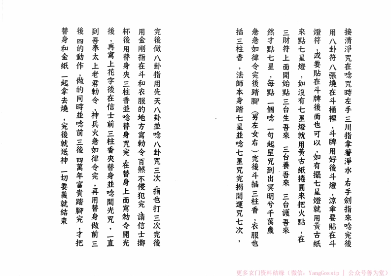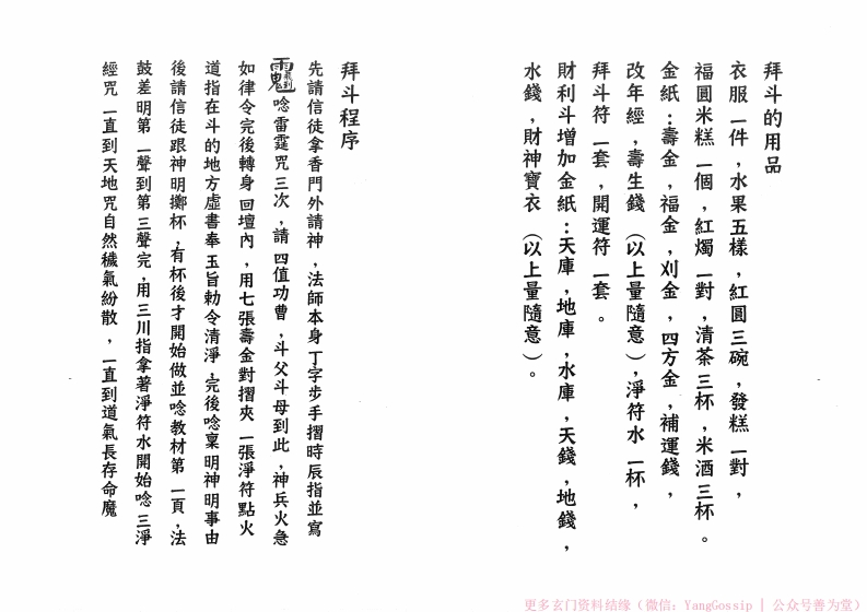 闾山拜斗的要义sishuge3天前发布关注私信8.77MB39页02812闾山拜斗的要义此内容为付费资源,请付费后查看¥3¥6VIP会员免费钻石会员免费立即购买您当前未登录!建议登陆后购买,可保存购买订单付费资源 第1页 / 共39页 第2页 / 共39页 第3页 / 共39页 第4页 / 共39页 第5页 / 共39页 第6页 / 共39页 第7页 / 共39页 第8页 / 共39页 试读已结束,还剩31页,您可下载完整版后进行离线阅读 © 版权声明文章版权归作者所有,未经允许请勿转载。THE END道法符咒# 道家# 闾山# 120本闾山法师 文本预览 惊伞日月拿月七星劍∞鏡子9斗燈順序:拜斗的東西:秤七星劍竹尺剪刀凉傘支,日月扇各支。空(長生燈)斗牌?。凉拿3。日月扇剪刀5竹尺⑧秤秤要有秤垂,竹尺支,剪刀一支,鏡子支五斗五穀米色子七星劍一支,油燈支,斗桶一個,斗米一桶,線更多玄门资料结缘(微信:YangGossip公众号善为堂) 查看更多 收起部分 喜欢就支持一下吧点赞12 分享QQ空间微博QQ好友海报分享复制链接收藏