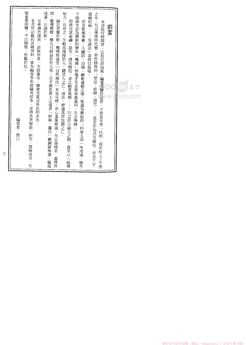 闾山教符咒秘诀sishuge3天前发布关注私信39.34MB102页0475闾山教符咒秘诀此内容为付费资源,请付费后查看¥3¥6VIP会员免费钻石会员免费立即购买您当前未登录!建议登陆后购买,可保存购买订单付费资源 第1页 / 共102页 第2页 / 共102页 第3页 / 共102页 第4页 / 共102页 第5页 / 共102页 第6页 / 共102页 第7页 / 共102页 第8页 / 共102页 试读已结束,还剩94页,您可下载完整版后进行离线阅读 © 版权声明文章版权归作者所有,未经允许请勿转载。THE END道法符咒# 道家# 闾山# 120本闾山法师 文本预览 大山書店總經销周山教待咒秘诀靈覺禪師編著docm豆丁WWW.Ccin.com 查看更多 收起部分 喜欢就支持一下吧点赞5 分享QQ空间微博QQ好友海报分享复制链接收藏