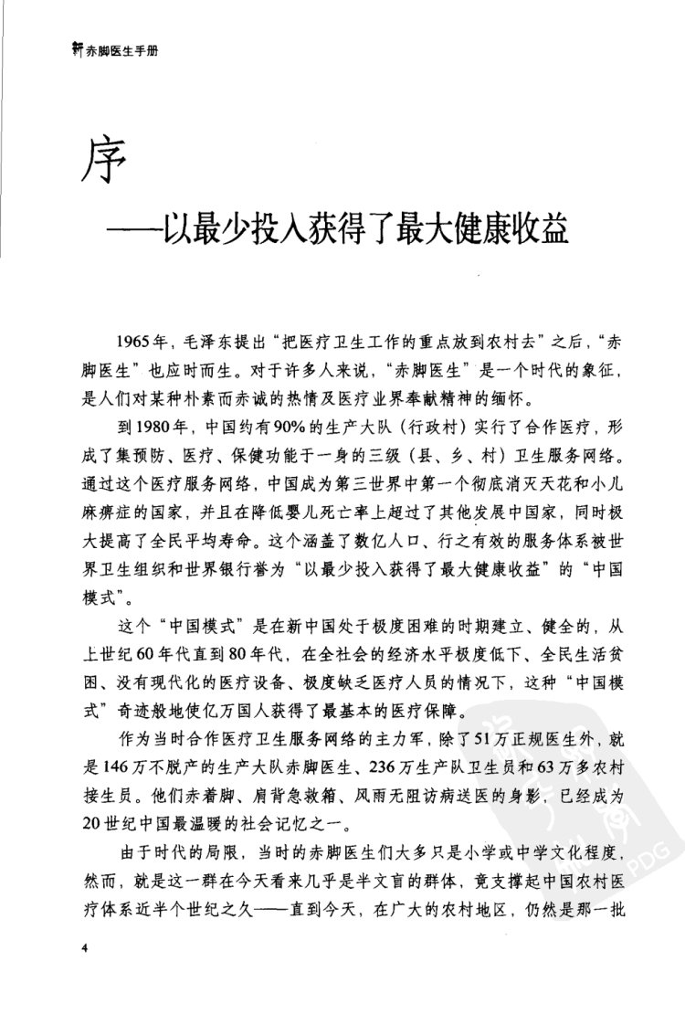 《新赤脚医生手册》中国13亿人口的全民健康指导手册sishuge昨天发布关注私信92.14MB780页04112《新赤脚医生手册》中国13亿人口的全民健康指导手册此内容为付费资源,请付费后查看¥3¥6VIP会员免费钻石会员免费立即购买您当前未登录!建议登陆后购买,可保存购买订单付费资源 第1页 / 共780页 第2页 / 共780页 第3页 / 共780页 第4页 / 共780页 第5页 / 共780页 第6页 / 共780页 第7页 / 共780页 第8页 / 共780页 试读已结束,还剩772页,您可下载完整版后进行离线阅读 © 版权声明文章版权归作者所有,未经允许请勿转载。THE END中医针灸# 中医# 中医赤脚医生手册22册 文本预览 13亿中国人的全民健康指导手册新赤脚医生手册在长达30年岁月里它一直是中国人民的健康必备手册它曾是中国八亿人民健康的有力保证之一并承载了那个时代有关奉献精神的记忆它的发行量仅次于“毛选”被译成50多种文字在全世界发行A NewBarefootDoctor's Manual《新赤脚医生手册》编辑部/编著使而师范大学出版和 查看更多 收起部分 喜欢就支持一下吧点赞12 分享QQ空间微博QQ好友海报分享复制链接收藏