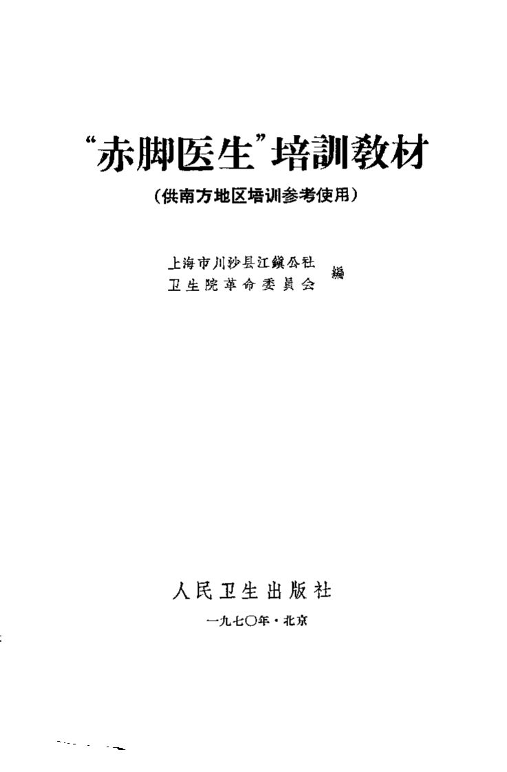 赤脚医生培训教材上海市川沙县江镇公社卫生院革命委员会编人民卫生出版社(南方地区)sishuge昨天发布关注私信7.66MB628页03114赤脚医生培训教材上海市川沙县江镇公社卫生院革命委员会编人民卫生出版社(南方地区)此内容为付费资源,请付费后查看¥3¥6VIP会员免费钻石会员免费立即购买您当前未登录!建议登陆后购买,可保存购买订单付费资源 第1页 / 共628页 第2页 / 共628页 第3页 / 共628页 第4页 / 共628页 第5页 / 共628页 第6页 / 共628页 第7页 / 共628页 第8页 / 共628页 试读已结束,还剩620页,您可下载完整版后进行离线阅读 © 版权声明文章版权归作者所有,未经允许请勿转载。THE END中医针灸# 中医# 中医赤脚医生手册22册 文本预览 赤脚医生”培訓教材(供南方地区培训参考使用)上海市川沙县江鑽公社卫生院革命委黄会换人民卫生出版社一九七○年·北京 查看更多 收起部分 喜欢就支持一下吧点赞14 分享QQ空间微博QQ好友海报分享复制链接收藏