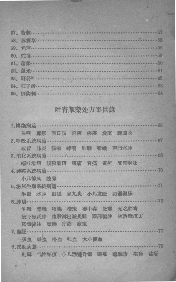 民间青草药第一集附处方集sishuge昨天发布关注私信37.55MB94页04810民间青草药第一集附处方集此内容为付费资源,请付费后查看¥2¥5VIP会员免费钻石会员免费立即购买您当前未登录!建议登陆后购买,可保存购买订单付费资源 第1页 / 共94页 第2页 / 共94页 第3页 / 共94页 第4页 / 共94页 第5页 / 共94页 第6页 / 共94页 第7页 / 共94页 第8页 / 共94页 第9页 / 共94页 第10页 / 共94页 试读已结束,还剩84页,您可下载完整版后进行离线阅读 © 版权声明文章版权归作者所有,未经允许请勿转载。THE END中医针灸# 中医 文本预览 民間青草藥第一集(附处方集)隔清縣中医藥研究所編著一九五九年七月一日 查看更多 收起部分 喜欢就支持一下吧点赞10 分享QQ空间微博QQ好友海报分享复制链接收藏