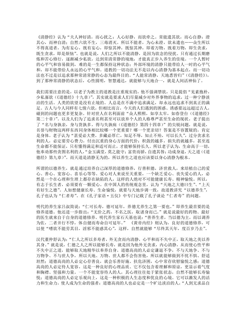 谈道教养生的三条原则sishuge7小时前发布关注私信6.66KB3页03911谈道教养生的三条原则此内容为免费资源,请登录后查看¥0¥1 登录查看免费资源 第1页 / 共3页 第2页 / 共3页 第3页 / 共3页 已完成全部阅读,共3页 © 版权声明文章版权归作者所有,未经允许请勿转载。THE END道法符咒# 道家# 道家养生 文本预览 高”,有了旷达淡泊的心态,就能够“不以物喜,不以己悲”,可以使人始终处于平和的状态,保持一颗平常心、平凡心,一切不利于身心健康的因素都会在这种心境下灰飞烟灭。做到这一点,你就是想不长寿都不行。所以,养生之道、长寿之术本来就是人人具备,不需要向外去求的。只要我们牢牢把握道教养生的这三条原则,以自然简约的心态、宁静淡泊的心境、慈善喜乐的心情去对待生活、善待生命,不去过分的追求对生命无益的事情,自然就能够健康长寿,获得生命的愉悦和安详。 查看更多 收起部分 喜欢就支持一下吧点赞11 分享QQ空间微博QQ好友海报分享复制链接收藏