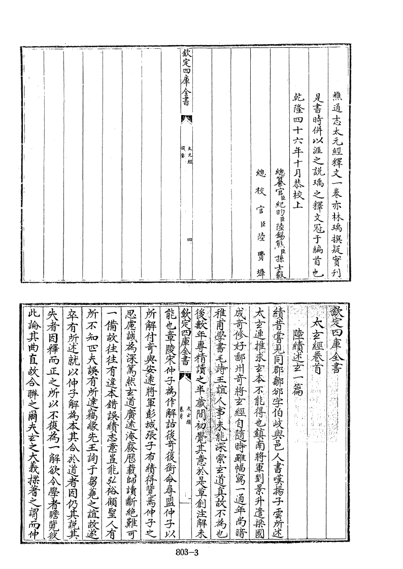 歐定四庫書乾隆四十六年十月恭校上總校官臣陸费辉總答官妃明臣陵錫熊日孫士致是書時供以涯之說璃之釋文冠于编首也照通志太元經辉文一春亦林璃撰疑實刊此論其曲直故合聯之刷未玄之大義拼着之谓而中失者因釋而正之所以不復為一解欲令學者瞻乳卒有所述就以仲子解為本其令於道者因仍其说其所不知四夫换有所建籍像先王的于留凳之谊故图一備故往往有建本錯操巅志意畫能弘裕顧聖人有思度誠為深篇然玄道廣遠海底歷载師讀新绝難可祈解付奇與安速将軍彭域張子布倩得覽焉仲子之能也章陵宋仲子為作解的後奇復街命鼻盟仲子以欽定四庫書陸髓述玄一篇太女經卷首太經後软年專精赞之半成間初覺其意於是草创注解未雅商學書毛詩王誼人事妹能深密玄道真故不為也成奇修好都州奇将玄經自随時雖唱窝一通年尚暗太玄連推求女本不能得也鎮南将軍到景外造梁园昔赏乳同郡都邻字伯吹與己人书虞楊子雲所述歡定四庫全書中门803