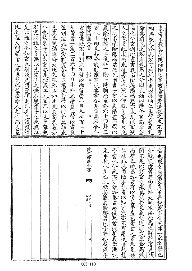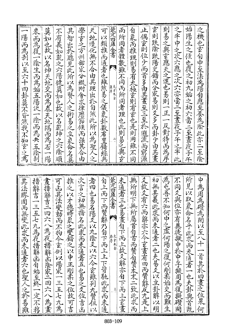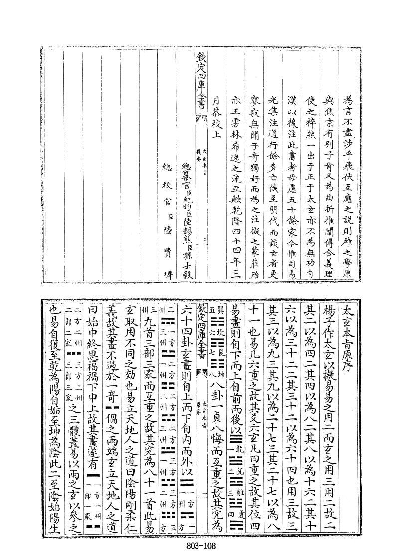 欽定四庫全書陽而為制以至六十四卦莫不音然我不知玄之為来而為復一陰生而為始五陽洪一陰而為共五险刹莫如也故以名坤天地交而為泰天地隔而為石一陽不有義如乾之六陽健莫如也故以名乾坤之六陰顺其智出於聽見此所以為贤人之術易之立泉命名學玄之方州部家分級附會求律歷節候而强其合由天地造化無不合由其理出於自然此所以為聖人之可以颗推而通者也雖然易之傷象卦教布置劈综與而所同者腰數難不同而所同者理也此则易之與交自象而推理則易有太極玄則有玄也是则用誰不同止偶互則位少而首多由其需至三至於谢流而窮源玄则跃陰跌陽交錯而亦家易则文多而卦少由其書则易之與玄應天之選也易则一正一及對待而為序之牛中之次六應之次六亦當二至畫夜子午之年此始陽生之候也復之初九始之初六當二至畫夜子午之機也玄自中至法為陽自應至養為陰此亦二至陰其法膠固而俱變此求而未通者六也聖人之於易難措辭吉一三五七九為夜楷静庭自始至終一定不移畫楷辭吉二四六八為夜楷辭古陰家二四六八為畫可这其法變動而不枸今玄例以陽家一三五七九為推之以才德時狼之變銷之以中正剛柔之位故可吉次言之初無指名此求而未通青五也易之文位吉言者阳也易名陽文以九陰文以六今互跳列九赞但以自上而下而赞静乃自下而上上下背馳此求而未诵太重水音未通者三也易書们下而上故文辭亦自下而上玄畫無所明下無所屬首自首而赞自赞太末二致此求而文故文有六而辭亦六今玄畫有四而赞辭及九是上初無其義此求而未通者二也夫易文以立卦辭以明為屯吾不知何中之虚何陽之復何刚柔始交而難生不同文與位亦有具能凝中於中孕凝周花復凝瑕關所見以取象命名乎此求而未诵者一也夫卦典首既中為周為恐為閑以至八十一首其於四畫之位果何803-109