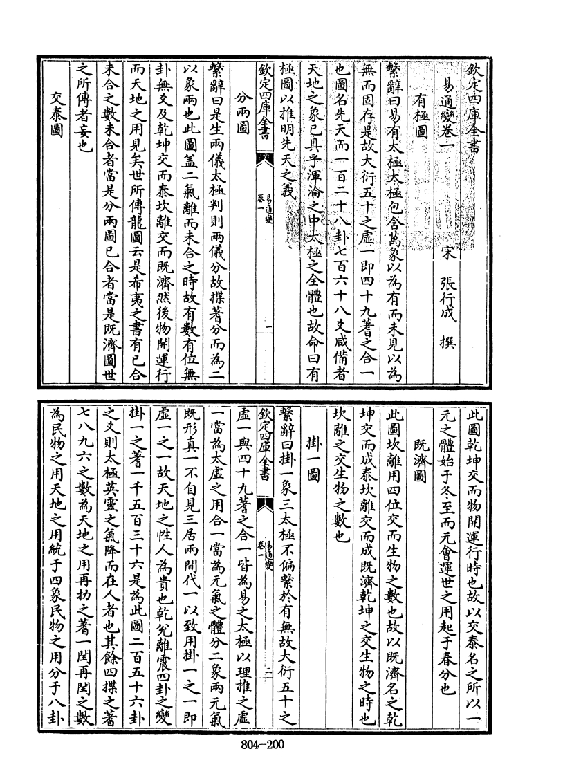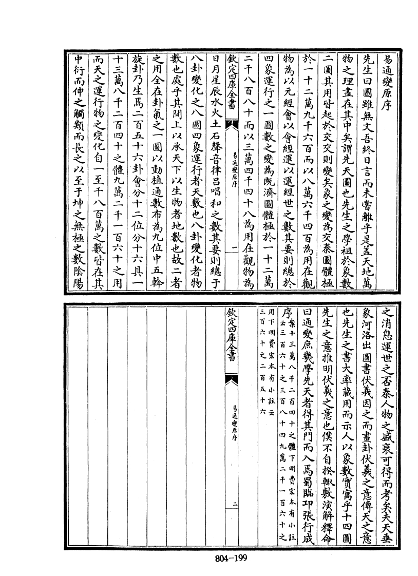 易通變原序中行而仲之筋類而長之以至于坤之無極之教陰陽而天之選行物之變化自一至千八百萬之數皆在其十三萬八千二百四十之體九萬二千一百六十之用旋卦乃生為二百五十六卦會分十二位分十六具一之用全在卦氣之一圖以動植通教布為九位中五斡敦也魔乎其間上以承天下以生物者地数也故二者八卦變化之八國四象運行者天数也八卦變化者物日月星辰水火土石聲音律吕唱和之數其要则總于歡定四庫全書昌通嫂原府二千八百八十而以三萬四千四十八為用在觀物為四象選行之一圖教之變為既济圖體極於一十二萬物為以元經會以會經選以選經世之款其要则總於於一十二萬九千六百而以八萬六千四百為用在觀二國其用皆起於交交则魔笑泉之變為交春國體極物之理畫在其中关謂先天圖也先生之學祖於象数先生曰圖雖無文吾然日言而未曾献乎是盖天地萬欽定四庫畫三百六十之二百五十六周下明费宏本有小社云易通嫂原序曰通變庶樂學先天者得其門而入高蜀臨印張行成先生之意推明伏義之意也供不自松飘敷演解釋命也先生之書大年成用而示人以象數實寓乎十四圖象河洛出圆書伏義因之而畫卦伏義之意傅天之意之消息運世之否泰人物之盛衰可得而考关夫天垂804-199