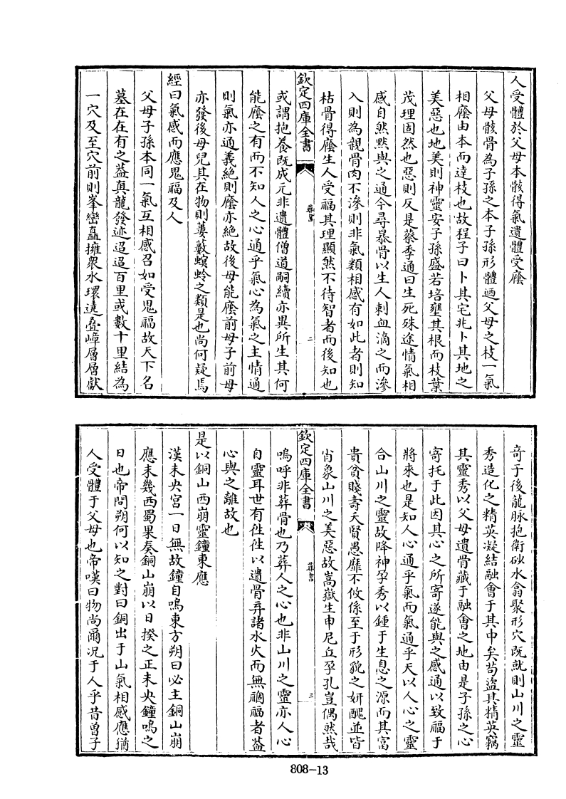 一穴及至穴前则鉴密高擁泉水環道壶嶂屬原献慕在在有之益真龍發迹過過百里或数十里結為父母子孫本同一氣互相感召如受思福故天下名經曰氣感而應思福及人亦發後母兒其在物則姜载螟岭之類是也尚何疑馬则氣亦通義绝则磨亦绝故後母能磨前妙子前母能套之有而不知人之心通乎氣心為氣之主情通或謂抱養既成元非遗體僧道嗣讀亦異所生其何欽定四康全書華枯骨得腾生人受福其理顯然不待智者而後知地入則為靓骨肉不海则非氣類相感有如比者则知咸自然然典之通今尋暴骨以生人刺血滴之而泳茂理固然也思则反是蔡季通曰生死殊途情氣相美惡也地美則神靈安子孫盛若培型其根而枝業相塵由本而達枝也故程子曰卜其宅花下其地之父母酸骨為子孫之本子孫形體過父母之枝一氣人受體於父母本散得氣遗體受廉人受體于父母也帝虞曰物尚爾况于人乎昔曾子日也帝問朔何以知之對曰銅出于山氣相感應猶應未数西蜀果奏銅山崩以日樱之正未央鐘喝之漢未央宮一日無故鐘自鳴東方朔曰必主銅山崩是以銅山西崩蜜鐘東應心典之離故也自靈耳世有性性以遗骨弃諸水火而無調禍者益鳴呼非葬骨也乃葬人之心也非山川之靈亦人心敬定四庫全書双肖象山川之美惡故嵩嶽生申尼立孕孔宣偶然哉贵貪膝壽天賢愚靡不饮像至于形說之朝配並皆合山川之靈故降神孕秀以鍾于生息之源而其富將来也是知人心通乎氣而氣通乎天以人心之靈寄托于此因其心之所寄迹能與之感通以致福于其蜜秀以父母遗骨藏于融會之地由是子孫之心秀造化之精英凝融會于其中矣苟溫其猜英稱奇子後龍脉抱衛融水贪聚形穴既就则山川之靈808-13
