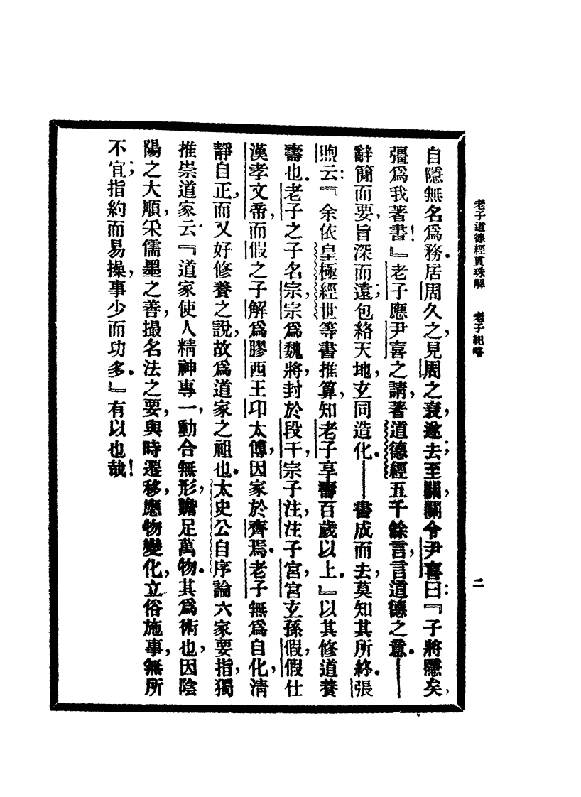 不官指約而易操事少而功多』有以也献陽之大順朵儒墨之善摄名法之要與時遷移意物變化立俗施事無所推崇道家云「道家使人精神事一勤合無形贈足萬物其為術也因陰静自正而又好修養之說故為道家之殿也大史公自序論大家要指獨漢孝文帝而假之子解為膠西王太傅因家於齊為老子無為自化清壽也老子之子名宗宗為魏將封於段干宗子注注子宫宫支孫假假仕煦云余依皇極經世等書推算知老子享書百藏以上』以其修道養辭簡而要旨深而遠包絡天地支同造化——書成而去莫知其所終福為我著書」老子應尹喜之講着道德經五千餘言言這德之意自隐無名為務居周久之見周之衰邀去至關關會尹喜日『子將職矣老子道傣經載珠解老于湘峰兰