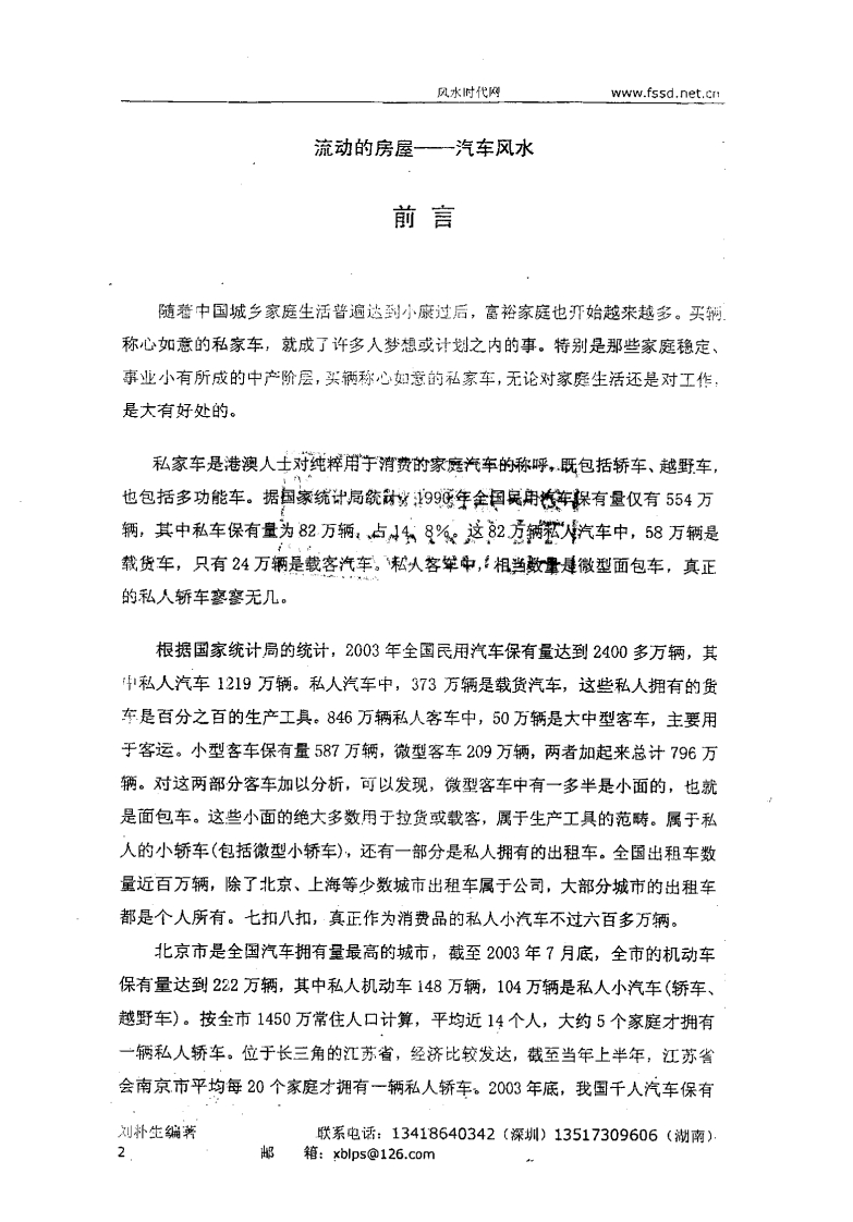 刘朴生_汽车风水-内部资料sishuge6个月前更新关注私信13.70MB63页03914刘朴生_汽车风水-内部资料此内容为付费资源,请付费后查看¥6¥10VIP会员免费立即购买您当前未登录!建议登陆后购买,可保存购买订单付费资源 第1页 / 共63页 第2页 / 共63页 第3页 / 共63页 第4页 / 共63页 第5页 / 共63页 第6页 / 共63页 第7页 / 共63页 第8页 / 共63页 试读已结束,还剩55页,您可下载完整版后进行离线阅读 © 版权声明文章版权归作者所有,未经允许请勿转载。THE END风水择日# 风水 文本预览 2流动白的房毫气车X风人刘朴生编著本书就人们普遍关心的热门话题进行探讨,例如:汽车有没有风水?它的风水有阿特殊性?汽车的朝向、明堂、后山、左右的护卫是怎样确定的?汽车怎样化煞?怎样选择车型、车名和车标识?怎样选择车的颜色?怎祥选择车牌号码?怎样选招购车、提车、出车的吉日良辰?等等,书中都有详细解答。中国时代风水研究中心编印2009年元月.深圳古籍库wwW.fczh」920.con 查看更多 收起部分 喜欢就支持一下吧点赞14 分享QQ空间微博QQ好友海报分享复制链接收藏